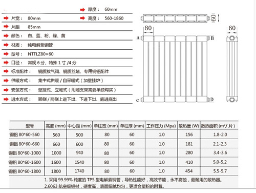 銅鋁復合80x60散熱器